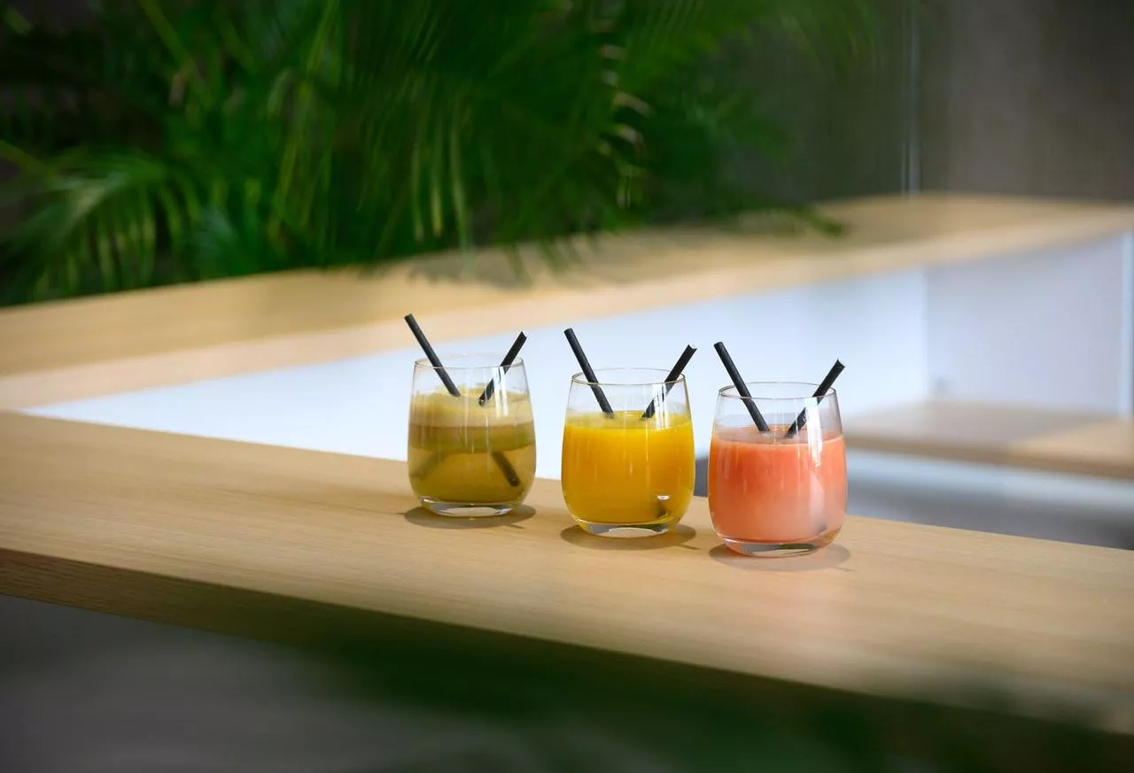 Светлый и просторный зал фито-бара наполнен расслабляющей атмосферой. Панорамные окна позволяют наслаждаться живописным видом на окружающую природу, а атмосферные растения создают ощущение уюта и спокойствия. Это идеальное место для того, чтобы провести приятно время, наслаждаясь вкусными напитками и отдыхая после СПА-ритуалов.