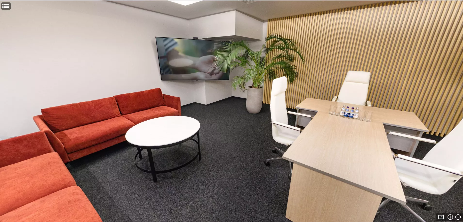 Комната оборудована всем необходимым для удобства участников: удобной мебелью, которая обеспечивает комфорт во время длительных встреч, размещение столов и стульев позволяет легко организовать пространство в зависимости от формата мероприятия, а большой плазменный экран обеспечивает высокое качество изображения и удобство при проведении презентаций, видеоконференций или демонстраций материалов.